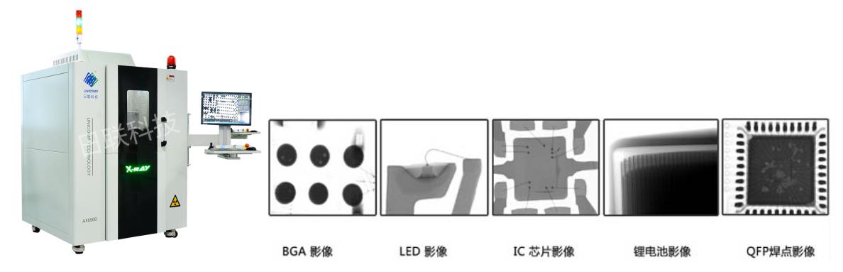 X射线检测设备在工业领域中通常有这样的一些行业使用的比较多。如电子产品,电子元件,半导体元器件,接插件,塑胶件,BGA,LED,IC芯片,SMT,CPU,电热丝,电容,集成电路,电路板,锂电池,陶瓷,铸件,医疗,食品等。在电子产品元器件中主要看焊接点是否断线、短路、焊接是否正常;在BGA,LED,IC芯片,SMT等应用中通常是要看这些工件的内部是否变形、金线是否正常、脱焊、空焊、连锡、气泡等瑕疵;在陶瓷,铸件中主要看工件中是否存在气泡、裂纹、夹渣等;在食品行业中主要是检测是否有异物等。在部分行业中,X射线检测设备检测这一过程也有的被称为无损探伤检测。