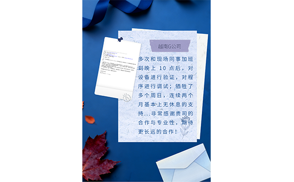 事后,客户特地发来中文感谢信:“…贵司团队的敬业精神与技术支持,让米兰·(milan)中国官方受益匪浅,对我司后续生产与测试工作的顺利开展起到了积极的推动作用...期待未来能有更多合作与交流的机会。”