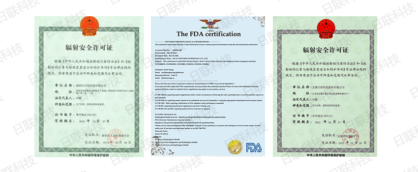 米兰·(milan)科技各类设备都严格申请了苏环辐射安全许可证、美国FDA安全认证、有些还具有豁免证书。