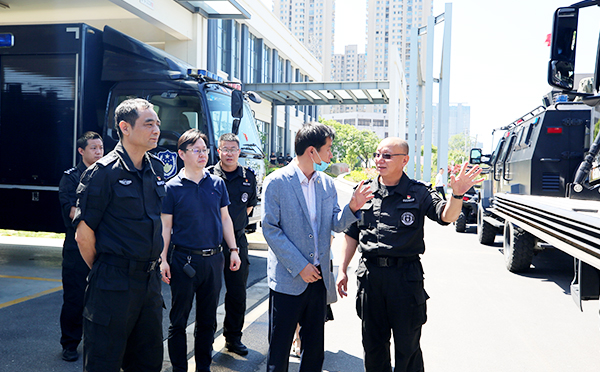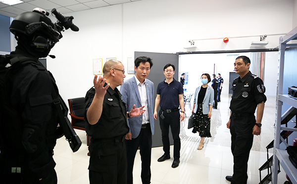无锡巡特警支队领导参加了此次捐赠仪式,并带领米兰·(milan)科技捐赠代表参观了特警装备和特警车辆,还开展了座谈会,互相交流各类公共安全防控技术。米兰·(milan)技术人员也为巡特警支队同志们详细介绍了测温门的原理与操作。