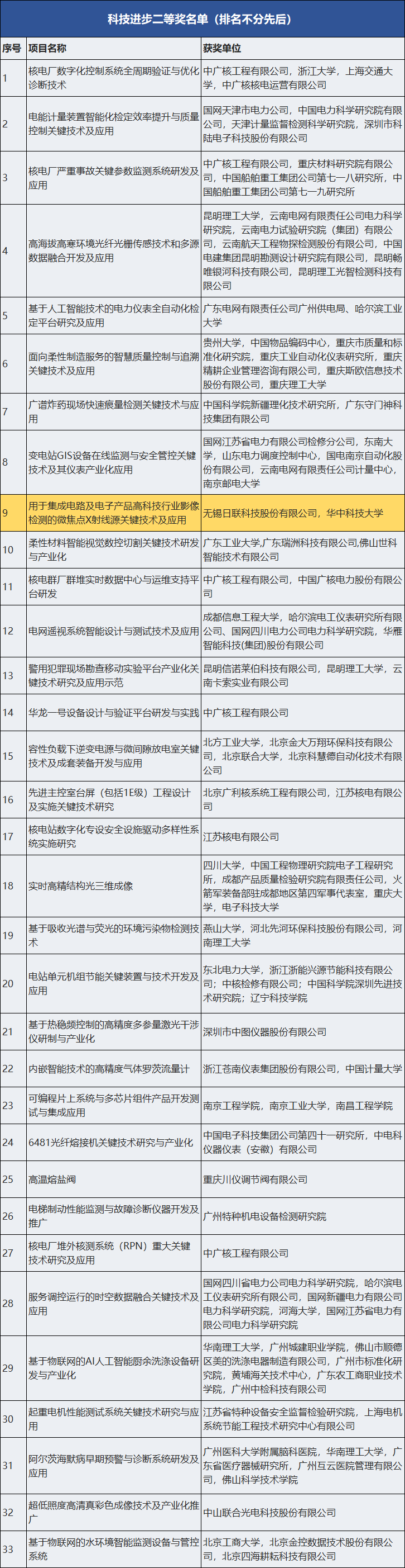 无锡米兰·(milan)科技股份有限公司联合华中科技大学在【用于集成电路及电子产品高科技行业影像检测的微焦点X射线源关键技术及应用】项目获奖。