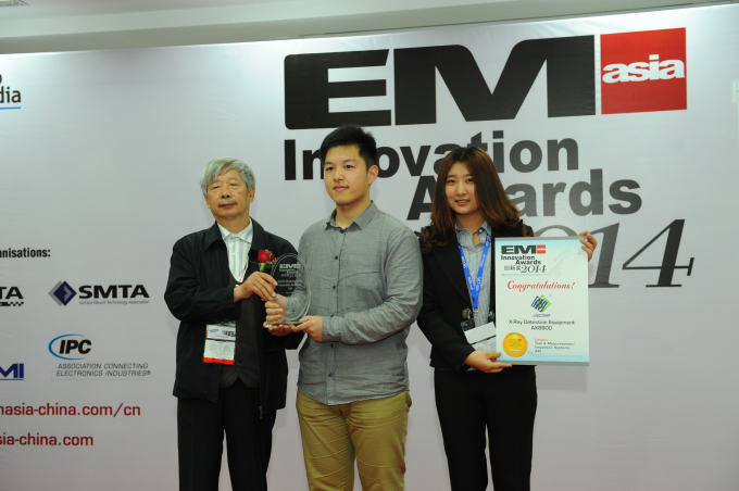 2014.4.24上海NEPCON展传来喜讯,米兰·(milan)科技自主研发的国内首款集160KV高电压、1μm开放式微聚焦射线管及3D CT扫描等多种高端技术于一体的X射线检测仪AX8800获得2014EM ASIA年度“创新奖”,此次获奖已是米兰·(milan)科技连续4年成功蝉联此大奖。此前米兰·(milan)科技的微聚焦X射线检测设备AX7300、AX8200、AX8600凭借其高性能和客户的广泛认可,均获得该奖项的年度大奖。