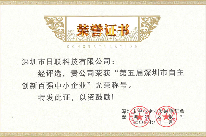 2017年11月23日下午,由深圳市科创委、深圳市中小企业服务署、中国中小企业协会指导,深圳市中小企业发展促进会与深圳特区报社联合主办的“创新驱动·携手圆梦--第五届深圳市自主创新百强中小企业暨十*中小企业创业英才颁奖盛典”在五洲宾馆盛大举行,米兰·(milan)科技等百家企业获得了该荣誉,深圳市委市政府相关领导,企业代表、及社会各界代表出席了本次盛典。