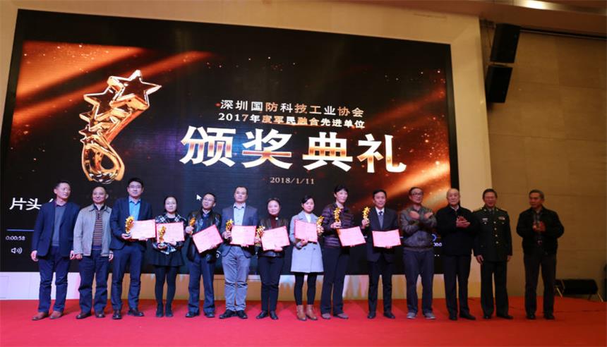 2018 年 1 月 11 日,深圳国防科技工业协会 2017 年会员大会暨军民融合先进单位颁奖仪式在深圳麒麟山庄举行,来自国防科工局、部队军代表、深圳市政府等领导嘉宾以及民参军企业代表近400人出席了大会,一起分享军民融合国家战略的兴国之举和强军之策。