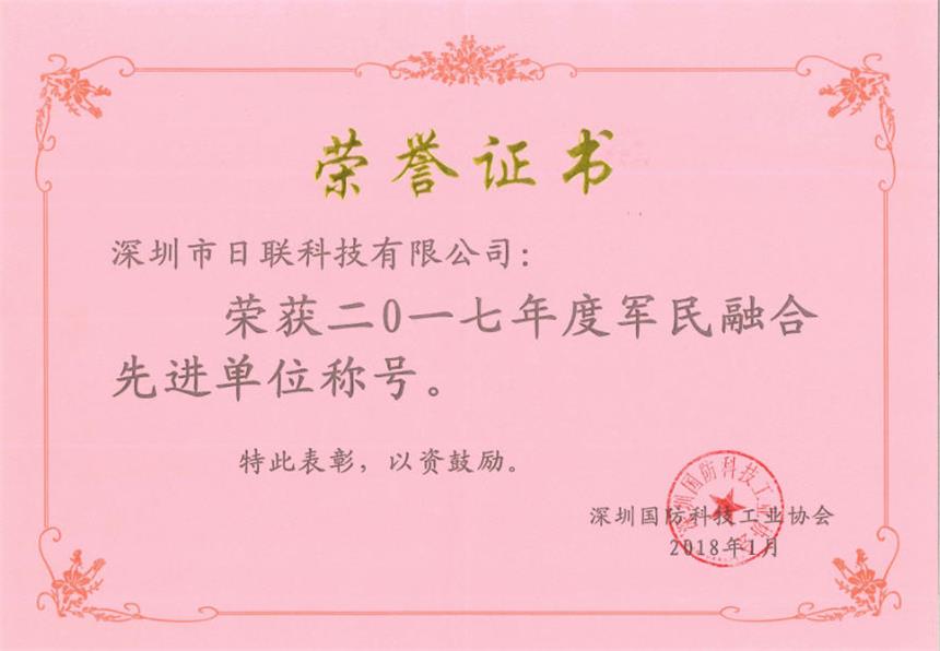 米兰·(milan)科技多年来始终积极响应军民融合战略的重要指示,从科研、生产、设备、技术、产品等多方面积极推进“民参军,军转民”项目,以及经过军工行业专家严格评审,喜获“2017年度军民融合先进单位”荣誉称号。